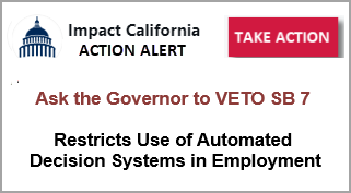 SB 7 (McNerney; D-Pleasanton) Restricts Use of Automated Decision Systems in Employment: Imposes impractical requirements on employers of every size related to automated decision systems, which will discourage the use of such tools and subject employers to costly litigation and onerous new compliance procedures, thereby driving up costs and ultimately impacting consumer prices. Top Story - June 23, 2025 / Podcast - September 30, 2025
